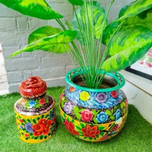 Handpainted Steel Matka formerly used for boiling water, Antique’A has given it a unique touch with truck art. ?